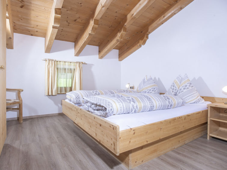 Appartement 7-kamers 180 m2, op de bovenste verdieping. Ruim, comfortabel en smaakvol ingericht: hal. Groot woon-/eetkamer met eethoek en Sat-TV (Flatscreen TV). Uitgang naar het balkon. 5 2-pers. kamers. 1 kamer met 2 2-pers bedden. Open keuken (oven, afwasmachine, 4 keramische glas kookplaten, magnetron). Bad/douche, douche, 2 aparte WC's. Houten vloeren. Comfortabele inrichting in landelijke stijl. Balkon. Balkonmeubilair. Mooi panoramazicht op de bergen en het landschap. Ter beschikking: Internet (WiFi, gratis). Rookmelders.