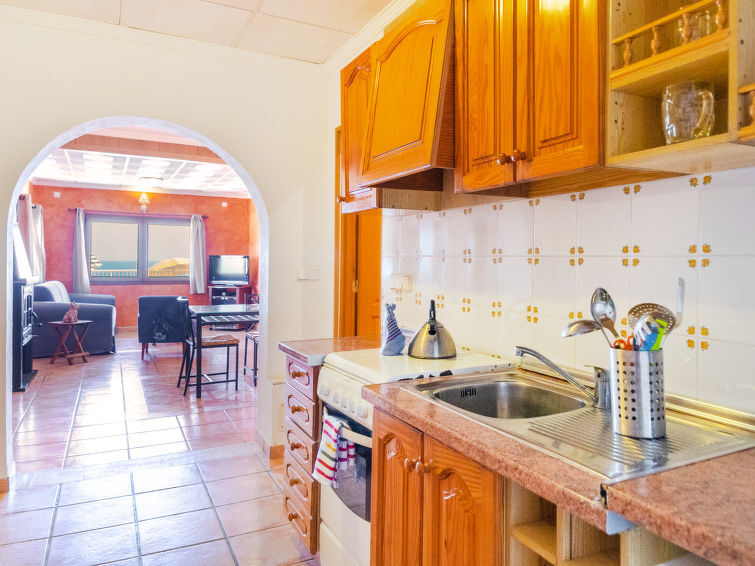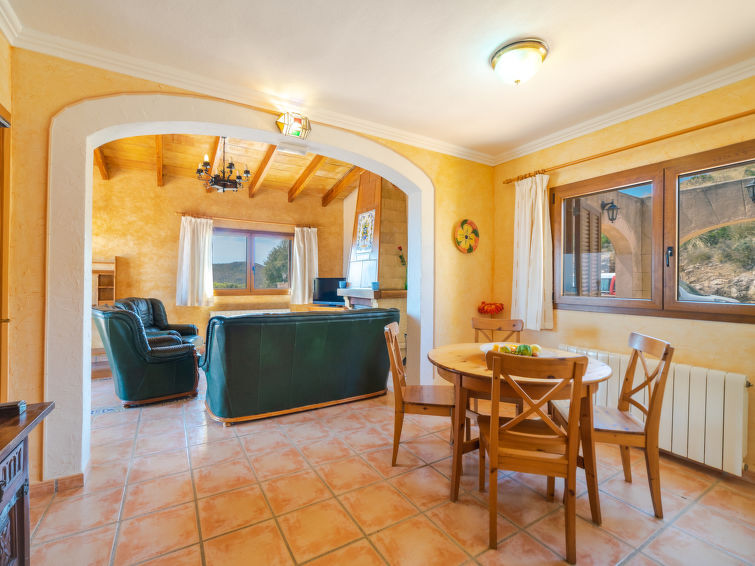 "Cala Torta Na Lluny", huis 7-kamers 400 m2 op 3 verdiepingen. Het objekt is geschikt voor 10 volwassenen. Licht, rustiek ingericht: woon-/eetkamer met open haard, eettafel, Sat-TV en stereo-installatie. Uitgang naar het terras. 1 kamer met 2 bedden en Sat-TV. 1 kamer met 1 2-pers bed, bad/WC en Sat-TV. Keuken (4-pits kookplaat, elektrische koffiemachine). Bad/WC. Verwarming. Bovenverdieping: woon-/eetkamer met open haard en eettafel. Uitgang naar het terras. 1 kamer met 2 bedden (90 cm). 1 kamer met 1 2-pers bed, bad/WC en Sat-TV. Keuken (4-pits kookplaat, magnetron, elektrische koffiemachine). Uitgang naar het terras. 2e Verdieping: 1 kamer 25 m2 met 2 bedden (90 cm), wastafel. Terrasmeubelen, barbecue. Panoramazicht op zee en de bergen. Ter beschikking: wasmachine, kluis, strijkijzer, kinderstoel, kinderbed tot 2 jaar. Internet (WiFi). Maximaal 2 huisdieren/honden toegestaan. Het huis heeft 2 verdiepingen met eigen ingang en faciliteiten: benedenverdieping (4 pers), middelste verdieping (4 pers) en de bovenverdieping (2 pers). ETV890