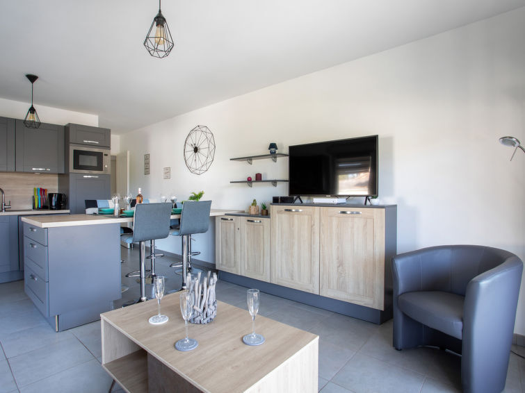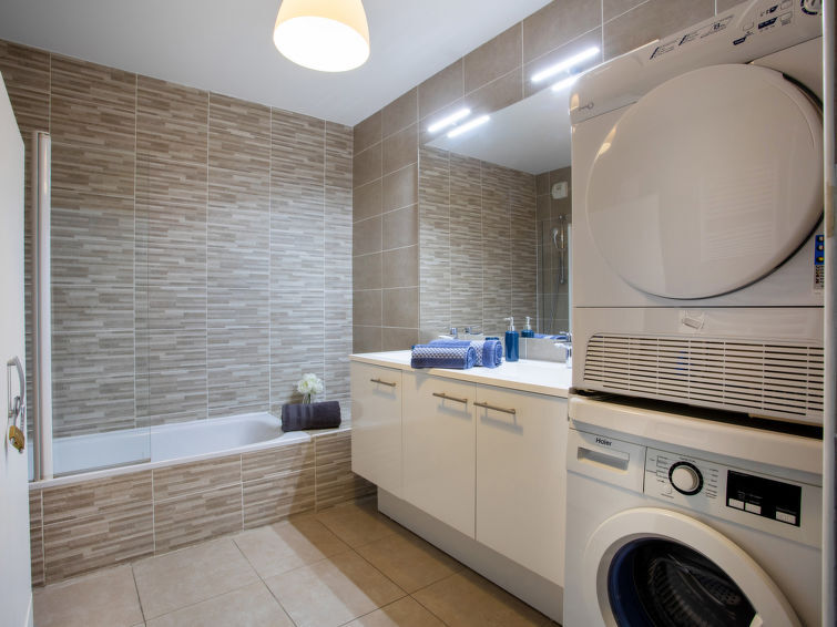 Appartement 3-kamers 80 m2 op de 1e verdieping. Comfortabel en modern ingericht: woon-/eetkamer met TV (Flatscreen TV). Uitgang naar het terras. 1 kamer met 1 x 1 stapelbedden (90 cm, lengte 190 cm), 1 2-pers bed (1 x 140 cm, lengte 190 cm), TV (Flatscreen TV). 1 kamer met 1 2-pers bed (1 x 160 cm, lengte 200 cm). Groot, open keuken (oven, afwasmachine, 3 inductiekookplaten, broodrooster, waterkoker, magnetron, elektrische koffiemachine, pads voor de koffiemachine (NESPRESSO VERTUO), kookeiland). Badkamer, aparte WC. Verwarming, air-conditioning. Groot terras 30 m2. Terrasmeubelen. Uitzicht op de plaats. Ter beschikking: wasmachine, droger, strijkijzer, haardroger. Internet (Internet (WiFi), gratis). Garage nr. 31 (1 Auto). Niet rokers woning. Rookmelders. Aanbod door een particulier volgens art. 155, IV van CGI. 06161000296TH