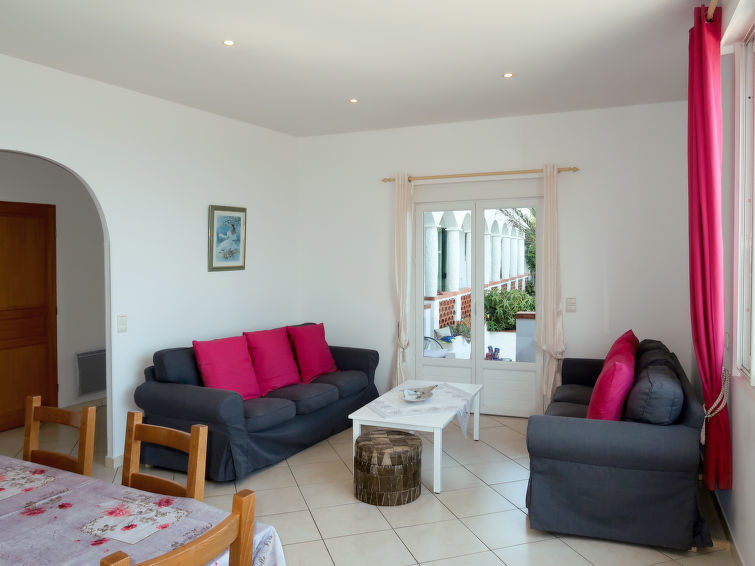"La Rocade (TEU110)", huis 4-kamers 80 m2. Licht, doelmatig en mooi ingericht: woon-/eetkamer met open haard (alleen decoratie), eettafel en Sat-TV. Uitgang naar het terras. 1 kamer met 1 2-pers bed. Uitgang naar de tuin. 2 kamers, elke kamer heeft 2 bedden en douche/WC. Open keuken (4-pits kookplaat, oven, afwasmachine, broodrooster, waterkoker, magnetron, diepvriezer, elektrische koffiemachine) met kleine eettafel. Uitgang naar het terras. Douche, aparte WC. Elektrische verwarming. Groot terras. Terrasmeubelen, barbecue. Mooi uitzicht op zee. Ter beschikking: wasmachine, kinderstoel, kinderbed. Internet (Internet (WiFi), gratis). Let op: niet rokers woning. Maximaal 1 huisdier/hond toegestaan. Rookmelders, brandblusser. De twee tweepersoonskamers zijn alleen toegankelijk van buitenaf via het terras (geen interne verbinding). Als er minder dan het maximale aantal gasten in de accommodatie verblijft, zijn niet alle slaapkamers beschikbaar voor gebruik.
