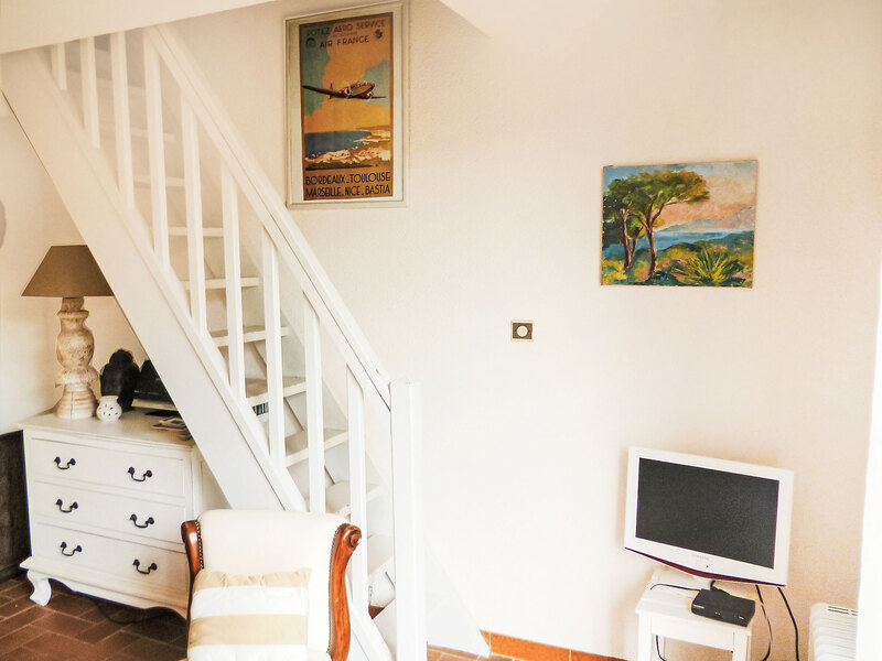 "Domaine des Vignes 4", huis 3-kamers 50 m2 op 2 verdiepingen. Comfortabel en mooi ingericht: woon-/eetkamer met TV (Flatscreen TV). Uitgang naar de tuin. Keuken (oven, afwasmachine, 2 keramische glas kookplaten, magnetron, diepvriezer, elektrische koffiemachine). Aparte WC. Bovenverdieping: (steile trap), 1 kamer met 1 2-pers bed (1 x 140 cm, lengte 190 cm), air-conditioning. 1 kamer met 1 uitschuifbaar bed (2 pers. 2 x 90 cm, lengte 190 cm). Badkamer. Elektrische verwarming. Terras, zithoek in de tuin 40 m2. Terrasmeubelen. Ter beschikking: wasmachine. Internet (Internet (WiFi), extra). Parkeerplaats nr. 90. Niet rokers woning. 1 huisdier/hond toegestaan. Rookmelders.
