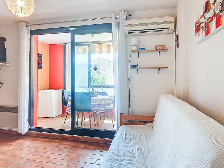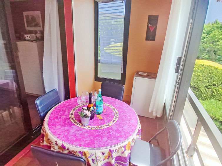Appartement 1-kamer 25 m2 op de 2e verdieping. Woon-/eetkamer met 1 uitschuifbaar bed (2 x 90 cm, lengte 190 cm), TV (Flatscreen TV), DVD en air-conditioning. Uitgang naar het terras, op het zuiden en op het westen. 1 kleine kamer met 1 2-pers bed (140 cm, lengte 190 cm). Kookhoek (mini-oven, 1 inductiekookplaten, 3 kookpitten (vlammen), broodrooster, waterkoker, elektrische koffiemachine). Douche/WC. Elektrische verwarming. Terras 7 m2, overdekt. Ter beschikking: Internet (WiFi, extra). Parkeerplaats nr. 408 op 80 m. Rookmelders. Aanbod door een particulier volgens art. 155, IV van CGI.