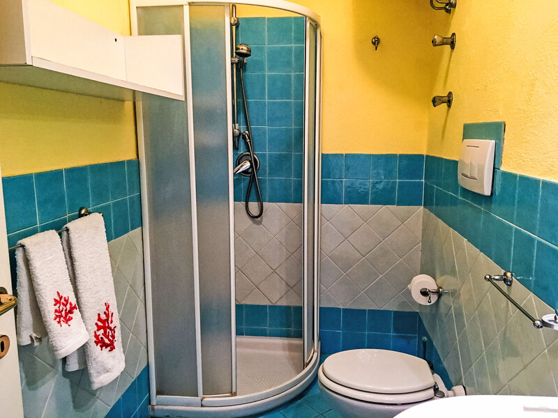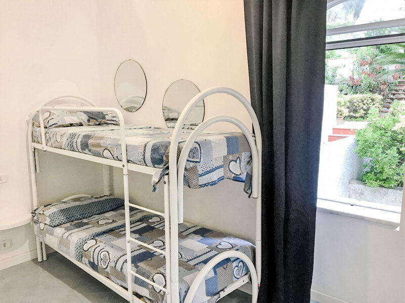 "Pithecusa", appartement 3-kamers 80 m2 op de 1e verdieping. Licht, doelmatig en comfortabel ingericht: open woon-/eetkamer met 1 bed, eettafel en Kabel-TV (Flatscreen TV), air-conditioning en heteluchtverwarming. Uitgang naar het balkon. 1 2-pers. kamer met panoramavenster. 1 kamer met 1 x 2 stapelbedden. Kleine keuken (4-pits kookplaat, oven, diepvriezer). 2 douche/bidet/WC's. Verwarming, heteluchtverwarming. Verwarming alleen beschikbaar van 01.11. tot 31.03. Klein balkon 5 m2. Balkonmeubilair. Zeer mooi uitzicht op zee en de plaats. Ter beschikking: wasmachine, haardroger. Internet(WiFi), gratis). Geschikt voor families.