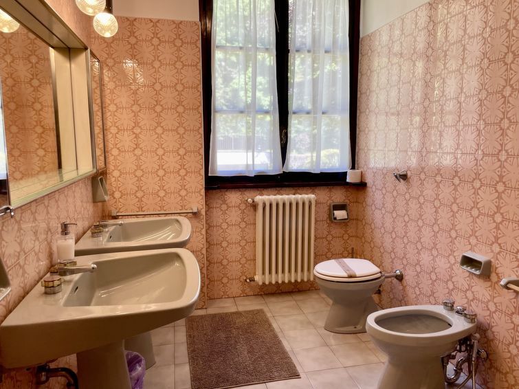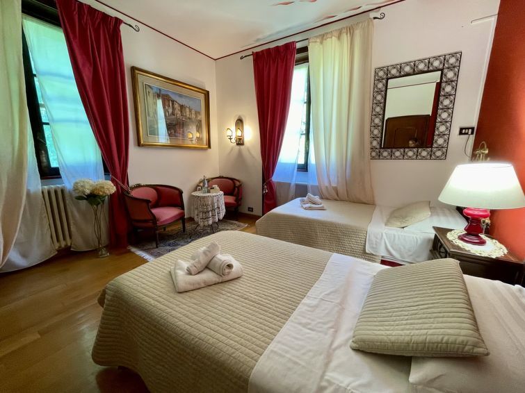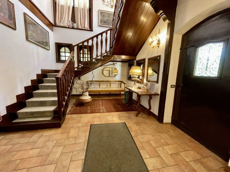 Villa 8-kamers 700 m2 op 2 verdiepingen. Comfortabel en smaakvol ingericht: open woonkamer met open haard en Sat-TV. Uitgang naar de tuin, naar de veranda. Open eetkamer met open haard en eettafel. 1 kleine kamer met 1 2-pers divanbed. Keuken (afwasmachine, Gasfornuis, 4 kookpitten (vlammen), broodrooster, waterkoker, elektrische koffiemachine, pads voor de koffiemachine (Nespresso) extra). Bovenverdieping: 1 2-pers. kamer. Uitgang naar het balkon. 1 2-pers. kamer. 1 kamer met 1 2-pers divanbed (140 cm), 1 2-pers bed. 1 2-pers. kamer. 1 kamer met 2 bedden. Bad/WC, 2 douche/WC's, hydro massage bad. Gas-verwarming. Natuurstenen vloeren. Groot balkon, ruime zithoek in de tuin. Terrasmeubelen, barbecue, ligstoelen, serre. Ter beschikking: wasmachine, kinderstoel, kinderbed tot 2 jaar. Internet (WiFi, gratis). Parkeerplaats (omheind, 4 Auto's). Rookvrij huis. Maximaal 2 huisdieren/honden toegestaan. IT097076B4TMZW6RUI