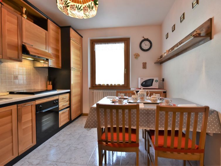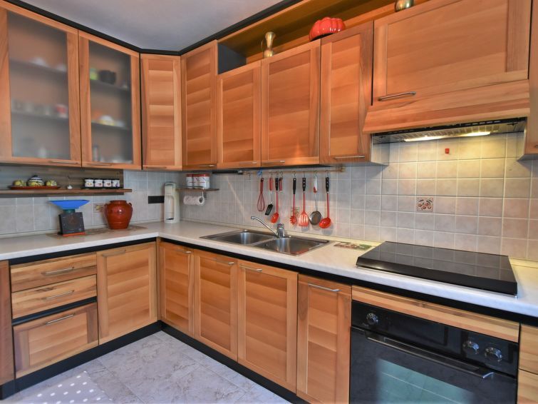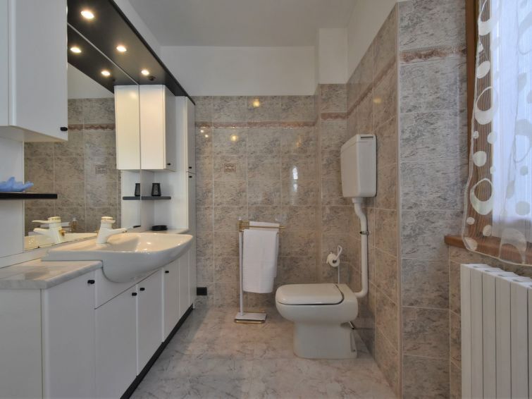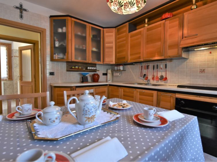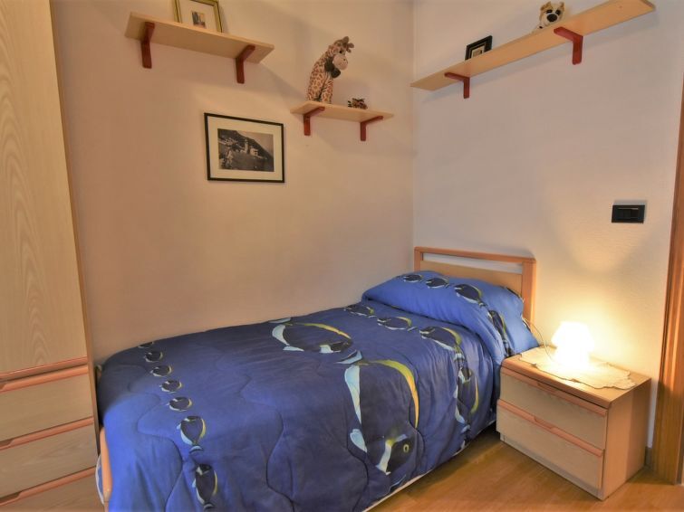 Appartement 3-kamers 90 m2 op de 1e verdieping. Ruim, doelmatig en comfortabel ingericht: woon-/eetkamer met zwedenkachel (alleen decoratie), eettafel en TV. Uitgang naar de tuin. 1 groot 2-pers. kamer. 1 kamer met 2 bedden. Keuken (1 kookplaat, oven, 3 kookpitten (vlammen), broodrooster, waterkoker, magnetron) met eettafel. Bad/douche/bidet/WC. Verwarming. Parketvloeren. Tuin. Terrasmeubelen, barbecue, ligstoelen (4). Uitzicht op de bergen en de tuin. Ter beschikking: wasmachine, haardroger. Internet (Internet (WiFi), gratis). Rookvrij huis. Privé ingang. IT014072C2SY265NGM