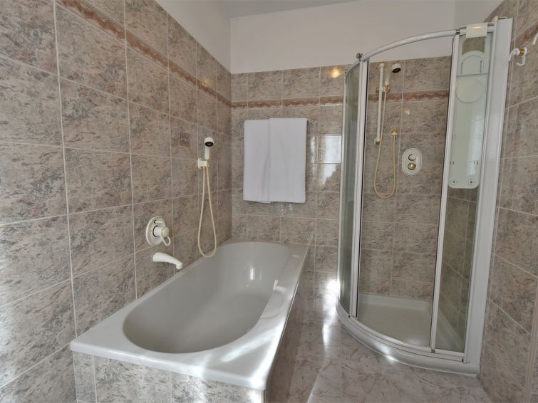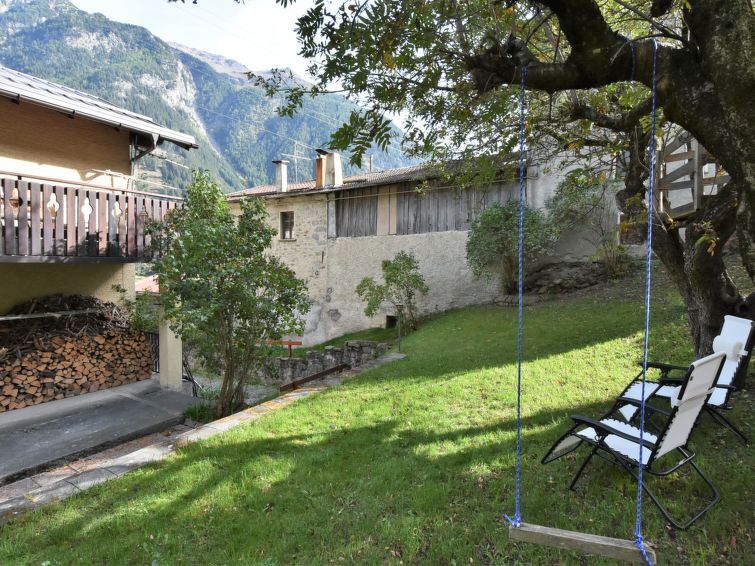 Klein, comfortabel appartementencomplex "Casa Le Fontane", 1.260 m boven zeeniveau, van 2 verdiepingen. In het gehucht Fontane, 7 km van het centrum van Bormio, 42 km van het centrum van Livigno, rustige ligging, 6 km van het skigebied. Voor alleengebruik: tuin op verschillende niveaus, 100 m2 (niet omheind) met gazon en bomen. Tuinmeubelen, barbecue. In het huis: bergruimte voor fietsen, berging voor ski's, centrale verwarming. In de winter sneeuwkettingen aanbevolen. Trappenweg (13 treden) naar het huis. Parkeerplaats (voor 2 auto's) bij het huis, openbare parkeerplaatsen in de straat. Levensmiddelenwinkel 1.5 km, supermarkt 1.5 km, restaurant 1.5 km, bar 1.5 km, thermaalbad "Terme di Bormio" 7 km. Auto noodzakelijk.