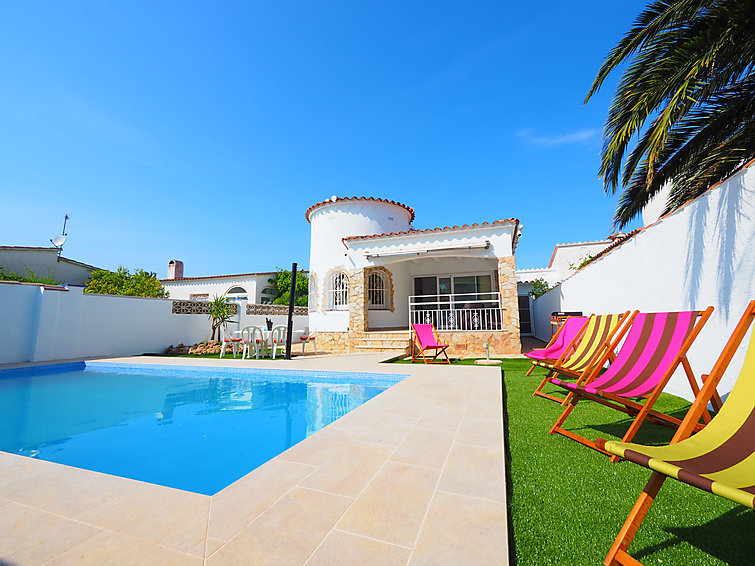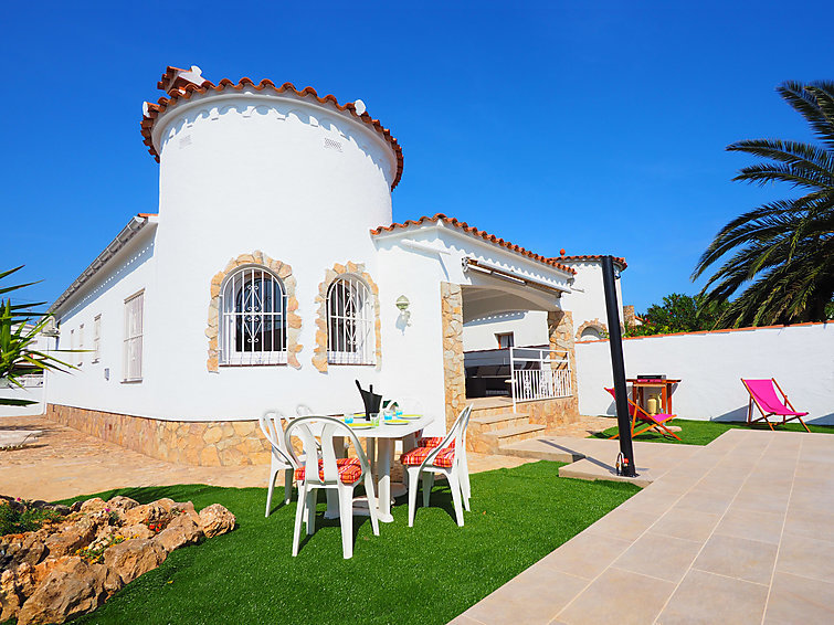 Zeer moderne, mooi eengezinswoning "Alberes", gerenoveerd in 2015. In de wijk Alberes, 1.2 km van het centrum van Empuriabrava, rustige, zonnige ligging villa wijk, gebied met weinig verkeer, 1.2 km van zee, 350 m van het kanaal, 450 m van de rivier, op het zuidwesten. Voor alleengebruik: openluchtzwembad hoekig (7 x 3 m, seizoensgebonden beschikbaarheid: 30.Mei. - 30.Okt.). Buitendouche, patio, prieel, tuinmeubelen, barbecue. In het huis: air-conditioning. Parkeerplaats, eigen garage. Winkel 300 m, levensmiddelenwinkel 300 m, supermarkt 400 m, restaurant 260 m, bar 300 m, bakkerij 230 m, bushalte 2.8 km, zandstrand "Empuriabrava" 1.2 km. Jachthaven 1.8 km, golfterrein (15 holes) 8 km, surfschool 2 km, zeilschool 2 km, tennis 2 km, midgetgolf 1.5 km, manege 3 km, wandelroutes 400 m vanaf het huis, fietspad 400 m. Attracties in de buurt: Centro paracaidismo y túnel del viento 2 km, Parque Acuático Roses 10 km, Museo Dalí Figueres 15 km, Castillo de Perelada 12 km, Ruïnas de St. Martí de Empúries 21 km, Monasterio de Sant Pere de Rodes 23 km. De sleuteloverdracht vindt plaats bij het agentschap Interhome in Empuriabrava.