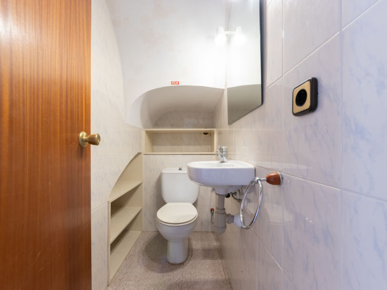 "Residencial Port Lligat", huis in een rij 4-kamers 95 m2. Het objekt is geschikt voor 4 volwassenen + 3 kinderen. Eenvoudig en doelmatig ingericht: woon-/eetkamer met Digitale TV. Uitgang naar de zitplaats in de tuin. Keuken (oven, broodrooster, waterkoker, magnetron, elektrische koffiemachine). Aparte WC. Geen verwarmingsmogelijkheid. Bovenverdieping: 2 kamers, elke kamer heeft 1 2-pers bed (135 cm, lengte 180 cm). 1 kamer met 2 bedden (90 cm, lengte 190 cm), 1 slaapplaats (80 cm, lengte 190 cm). Bad/WC. Zithoek in de tuin. Terrasmeubelen, barbecue, ligstoelen (2). Ter beschikking: wasmachine, kinderstoel, kinderbed tot 3 jaar. Internet (WiFi, gratis). Garage, hoogte 210 cm, breedte 350 cm. Geschikt voor families. Rookvrij huis, parkeerplaats alleen voor een kleine auto. TV alleen ES. HUTT-064671 // Reg. Nr.: ESFCTU00004302700018503700000000000000000HUTT-0646714